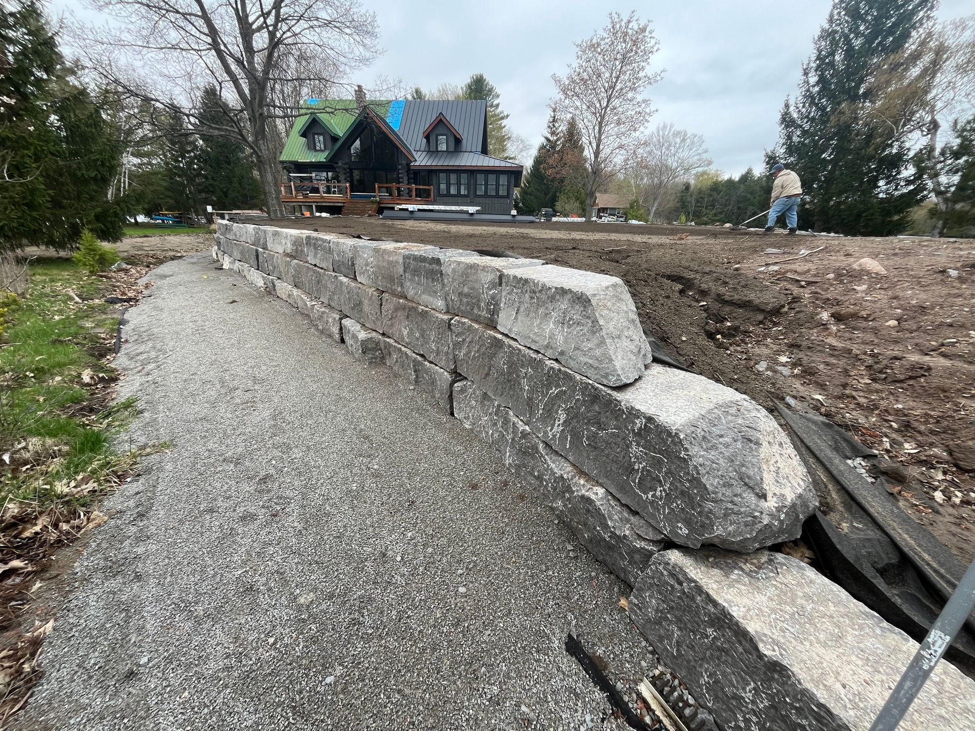 Armour stone and flagstone have played a vital role in our business, transforming uneven landscapes into functional outdoor living spaces with breathtaking aesthetics. Armour stone walls are an excellent way to achieve this, harmonizing beautifully with the Canadian Shield that we all cherish.