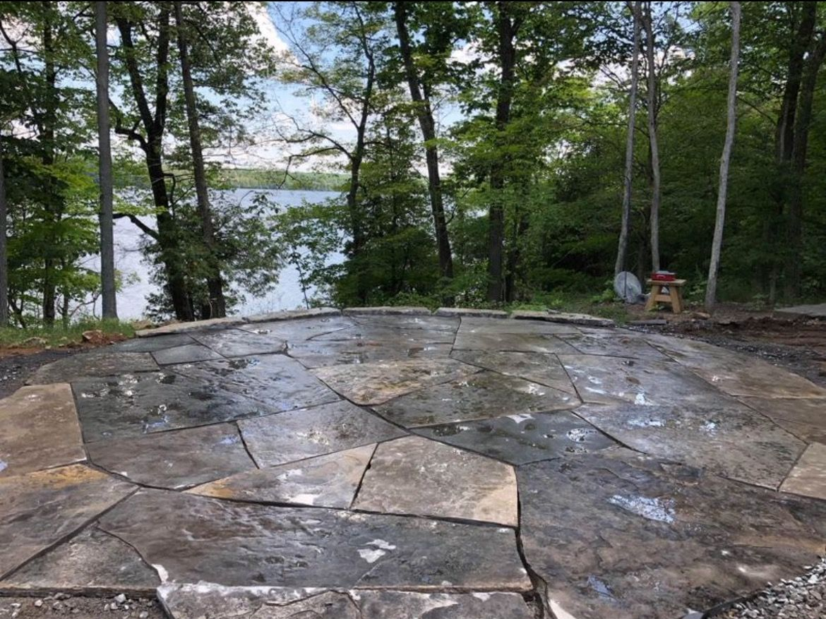 Alternatively, do you have an entranceway that fails to capture the attention you desire, or perhaps the worn grass leading to a small, uneven fire pit that your family gathers around each weekend? Flagstone may be exactly what you need. Our jumbo flagstone creates a striking pathway or entrance that seamlessly connects to a spacious circular fire pit ring, providing ample room for all your Adirondack chairs to gather around for storytelling by the campfire.